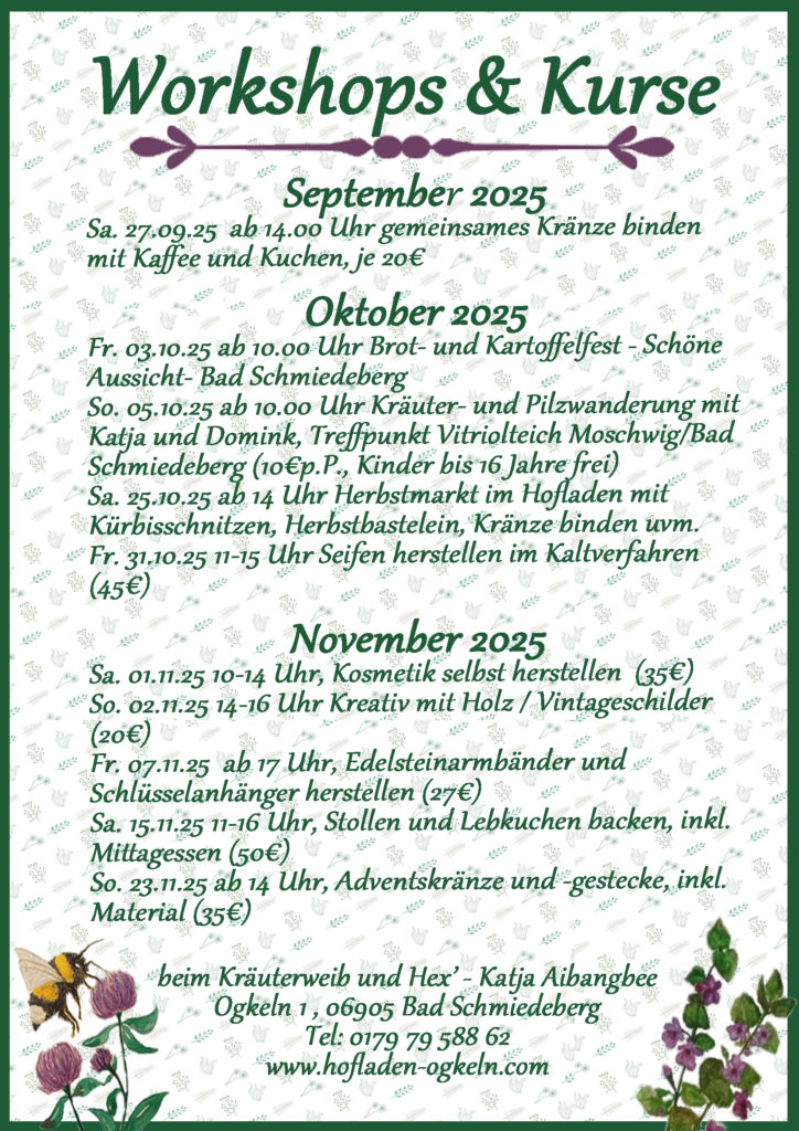 Unser Hof ist nicht nur ein Ort für gutes Essen und schöne Dinge, sondern auch ein Platz zum Lernen, Entdecken und Kreativwerden. Mit unseren Kursangeboten laden wir dich ein, gemeinsam mit uns in die Welt der Natur, der Kräuter und der Kreativität einzutauchen.